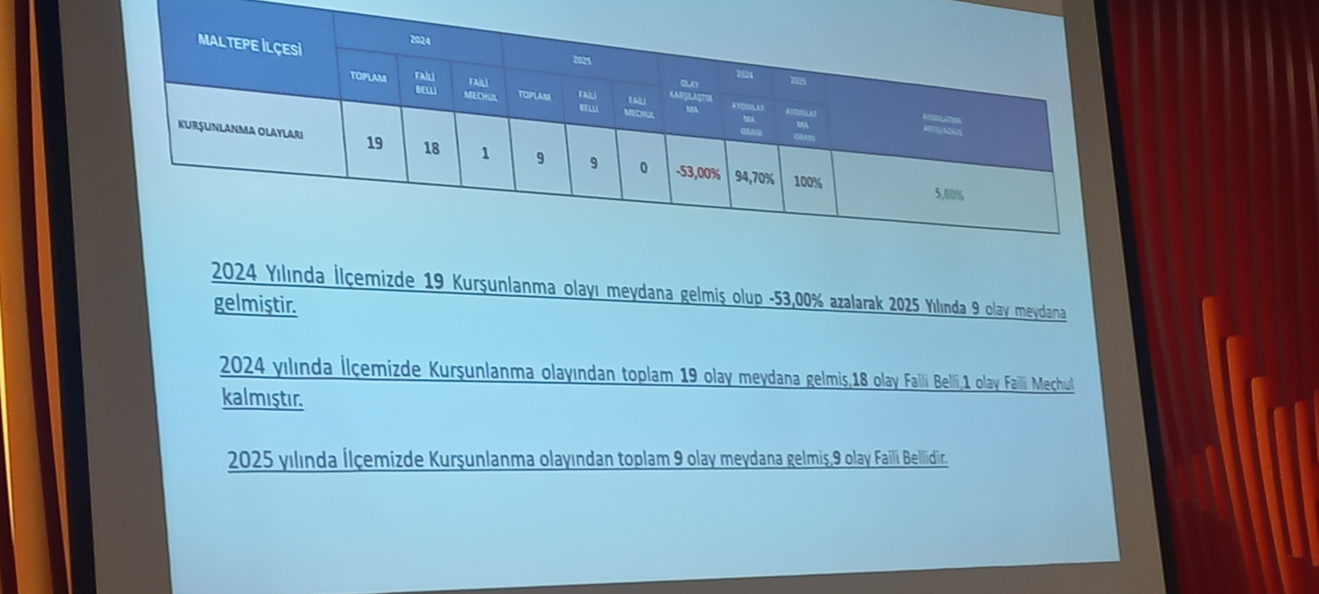 2025 yılı genel asayiş durumu ve güvenlik çalışmalarıyla ilgili kapsamlı bir sunumun gerçekleştirildiği huzur toplantısında, Maltepe Belediyesi başkan Esin Köymen'de dahil olmak üzere hiç bir düzeyde katılım sağlamadı.