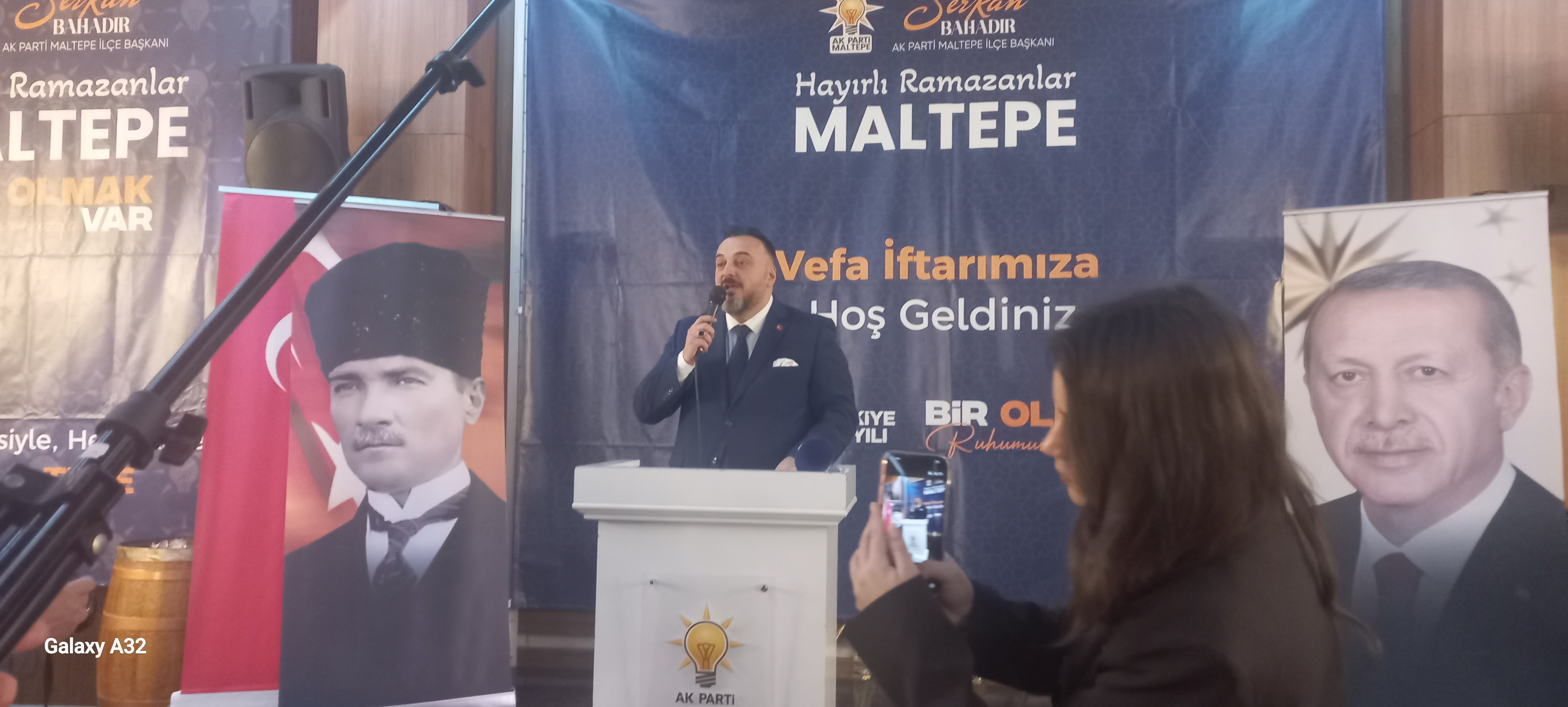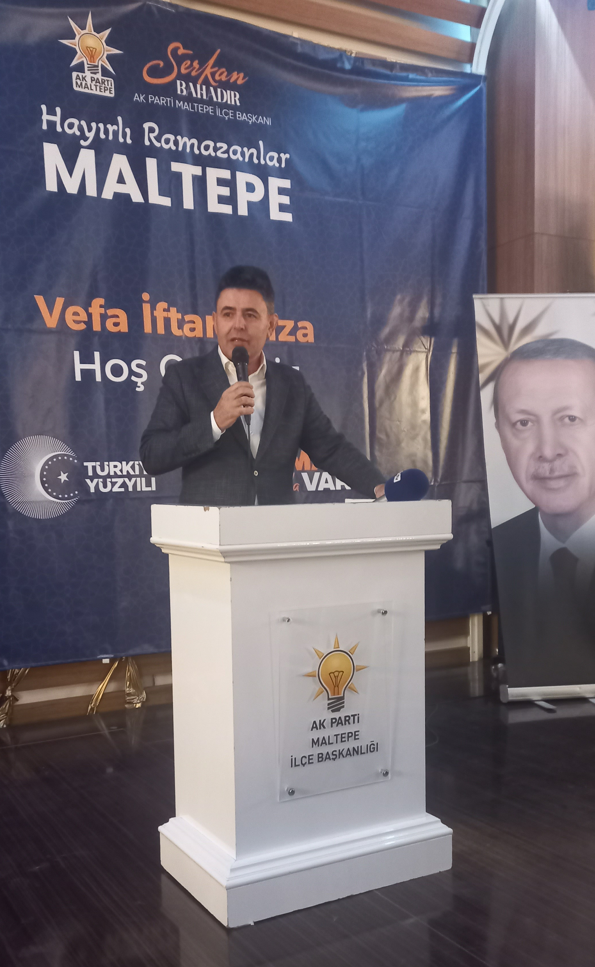 Vefa iftarında partileri rekor bir katilimla biraraya getirme başarısının haklı gururuyla davetlilere seslenen, Ak Parti Maltepe ilçe Başkanı Serkan Bahadır,partisine emek veren herkese tesekkur ederek sözlerini şu şekilde sürdürdü:" Bugün burada hep birlikte bir mesaj veriyoruz, biz beraberiz birlikteyiz Çünkü bir olmak ruhumuzda var Maltepe hizmete Maltepe çalışmaya Maltepe samimiyete ve aşka muhtaç olmuş, ihtiyacı olmuş ve bu hizmeti verecek olan AK Parti kadroları bugün burada bir araya gelmiş, bütün Maltepe bugün burada bu Vefa iftarında toplanmış, Biz hazırız, birlikte beraber Yürüyoruz arkadaşlar, hep beraber kazanacağız önce Sayın Cumhurbaşkanımızı yeniden Cumhurbaşkanı seçecek,akabinde Maltepe'ye AK Parti belediyeciliğini sizlerle birlikte yeniden geri getireceğiz, Biz hazırız Bizler kazanacağız Hem de öyle bir kazanacağız ki herkes kazanacak Allah'ın izniyle, hepinize teşekkür ediyorum bu mekanlar bize yetmez bizi hiçbir yer sığdıramaz Biz yeryüzünün her yerindeyiz diyorum sizlere teşekkür ediyorum."