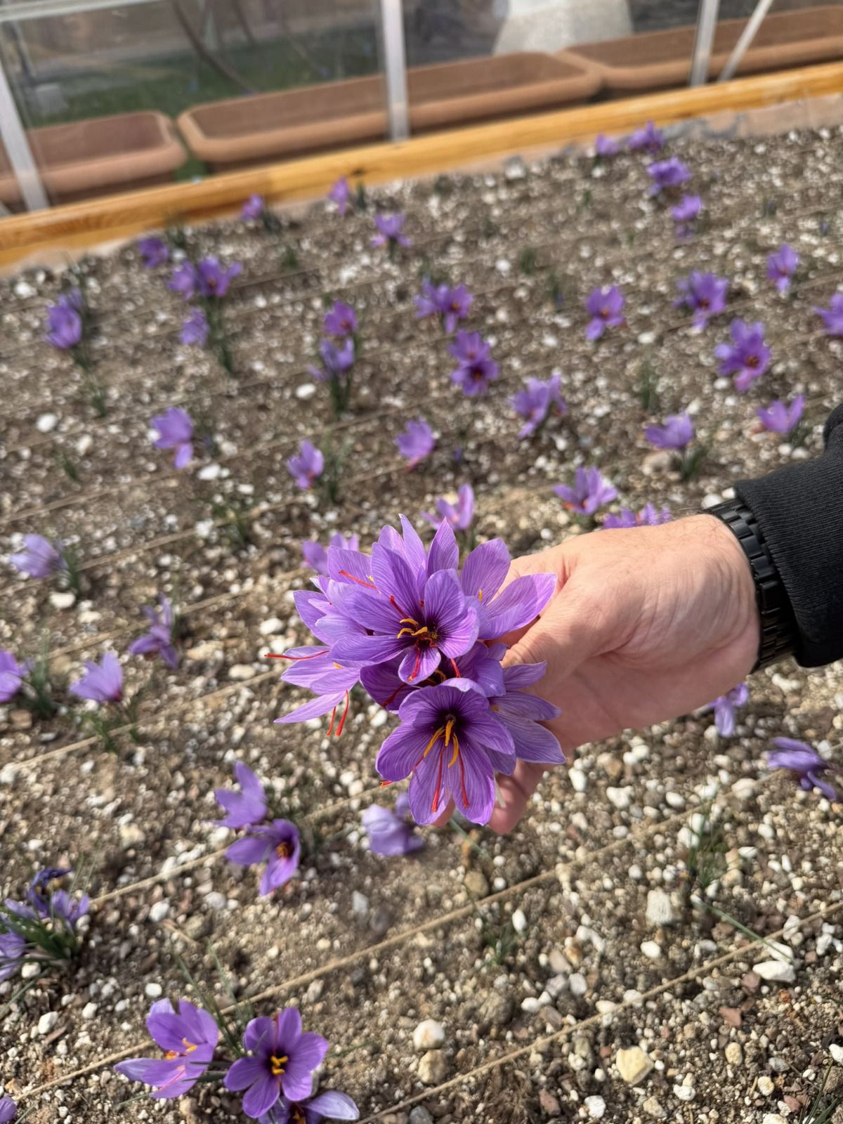“Rengiyle bereketi, kokusuyla huzuru, şifasıyla sağlığı temsil eden bu nadide bitkiyi; zahmetli üretim sürecine rağmen özel formüllerle hazırladığımız doğal gübreleme yöntemleri sayesinde başarıyla yetiştirdik ve bugün emeğimizin karşılığını alarak safranı hasat ettik.