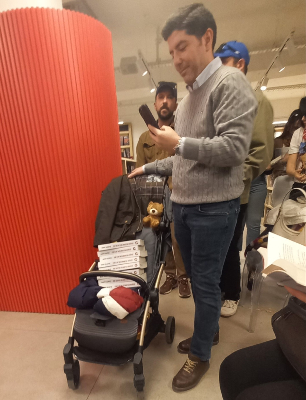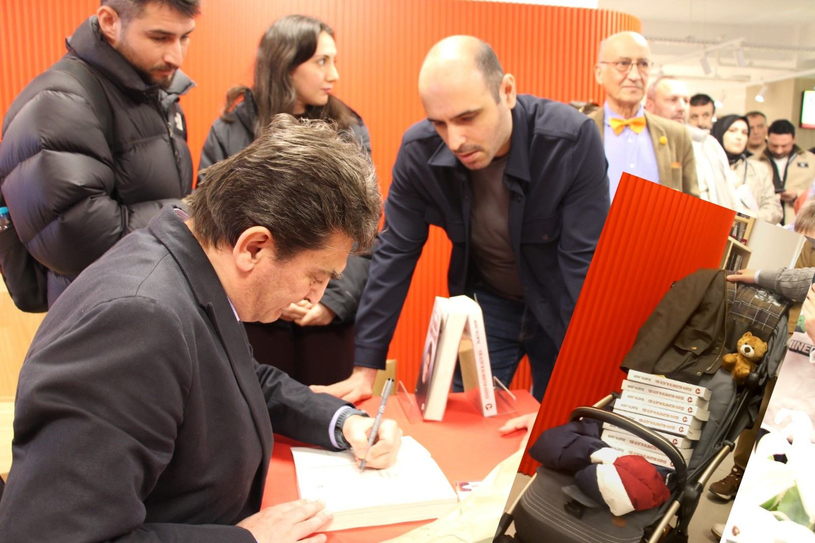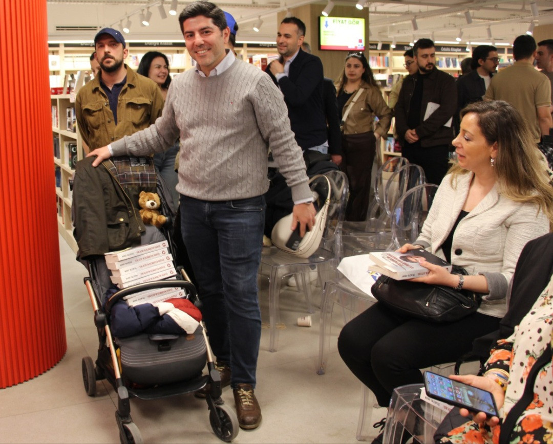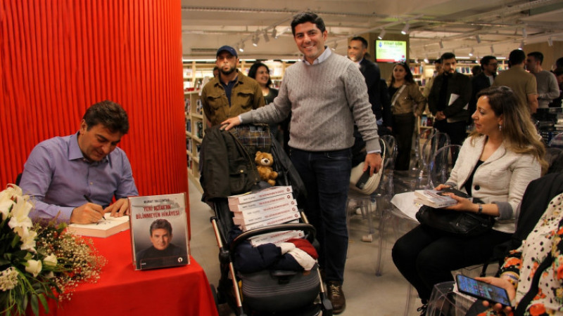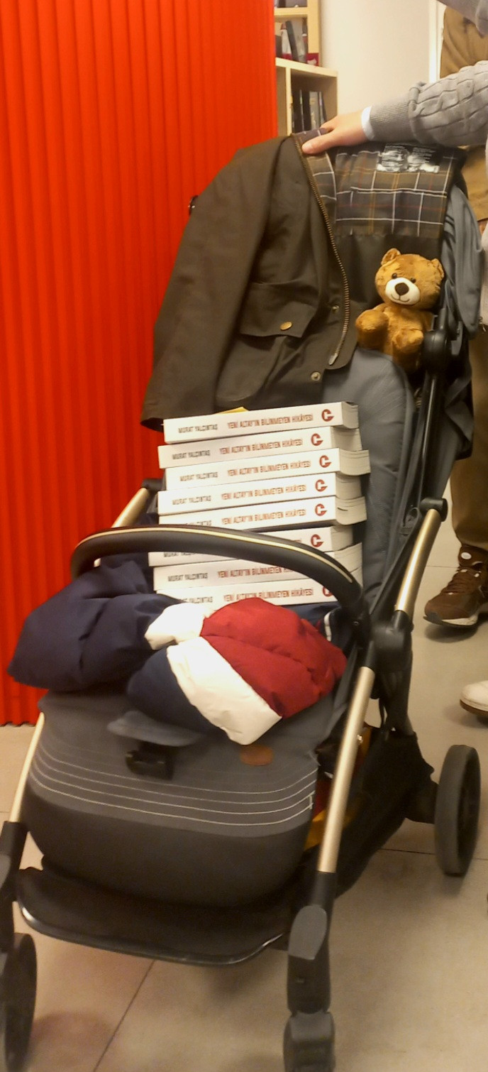 OYAK Genel Müdürü Prof.Dr.Murat Yalçıntaş'ın YENİ ALTAY'IN BİLİNMEYEN HİKAYESİ adlı son kitabının imza gününde, bir okuyucu bebek arabasına doldurduğu kitaplarla imza sırasına girip renkli ve neşeli bir atmosfer olusturup dikkat çekti.